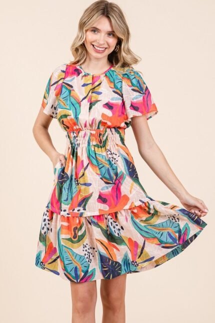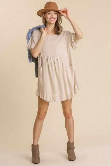 Trendy animal print dress by Umgee featuring a tiered design, short sleeves, collared neckline, and frayed hem.? Great to layer with a jacket!? Belt not included.? We love the animal print and flattering tiered style.? This dress is perfect for fall and will make a great go-to piece in your closet!